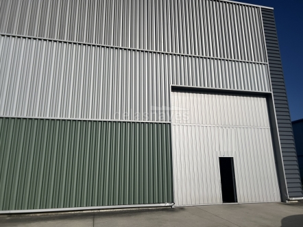 Portones automáticos Hormann en fachada delantera y trasera de 4,5x5 m de altura.